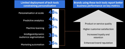 Even as Indian brands lead the world in customer data capabilities, they are currently lagging in the adoption of technologies and tools that support personalisation, the report noted.
